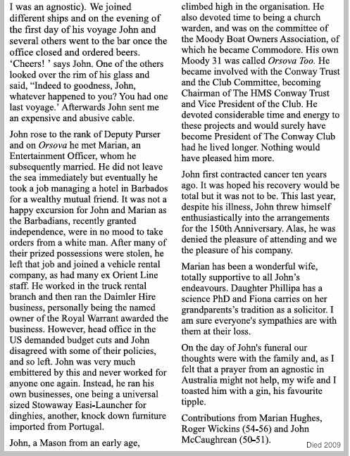 Crossed The Bar Porstmouth UK and buried at sea